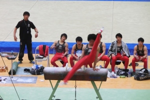 また、男子個人総合では、早坂尚人選手(3年)が優勝、3位に谷川航選手(2年)が入りました。個人種目別では、あん馬と平行棒で萱 和磨選手(2年)、つり輪で神津源一郎選手(3年)が優勝しました。