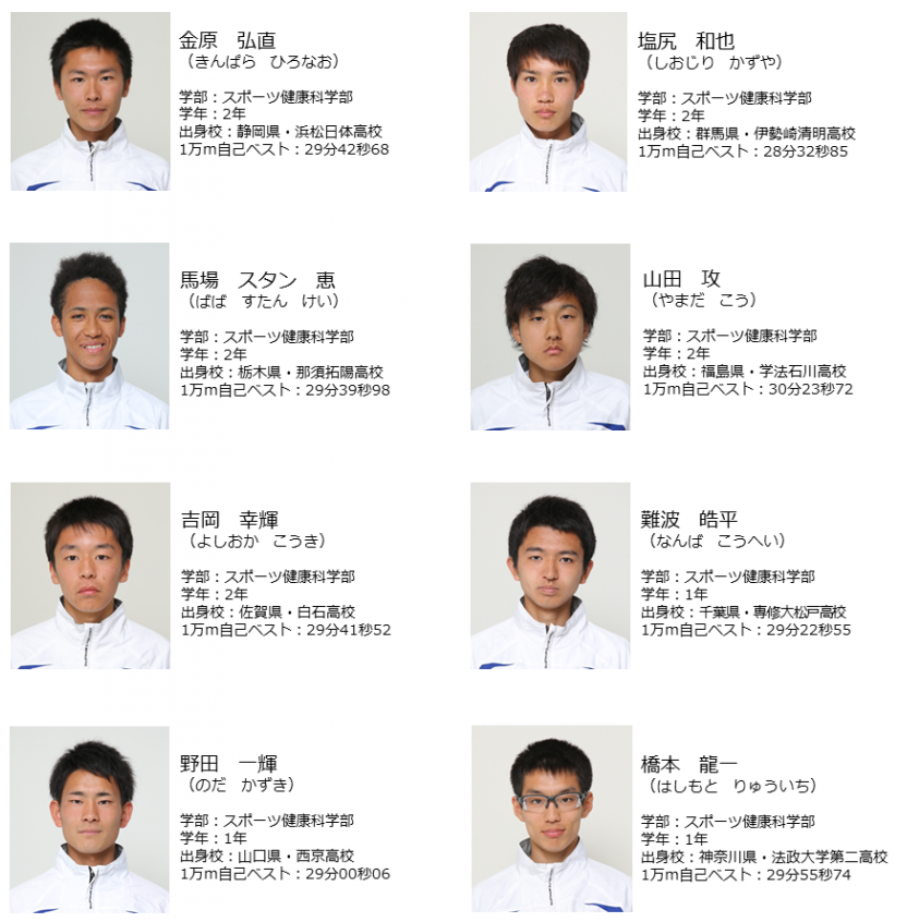 2017年1月2~3日に開催される第93回東京箱根間往復大学駅伝競走の本学のエントリーメンバーです。