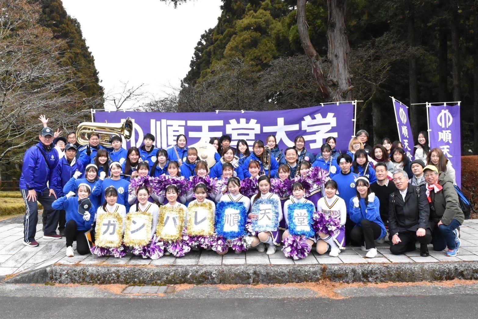 応援場所には、順天堂を応援する多くの方々が集まり、声を張り、校歌を歌い、演奏し、気持ちをひとつにして選手へエールを届けます。