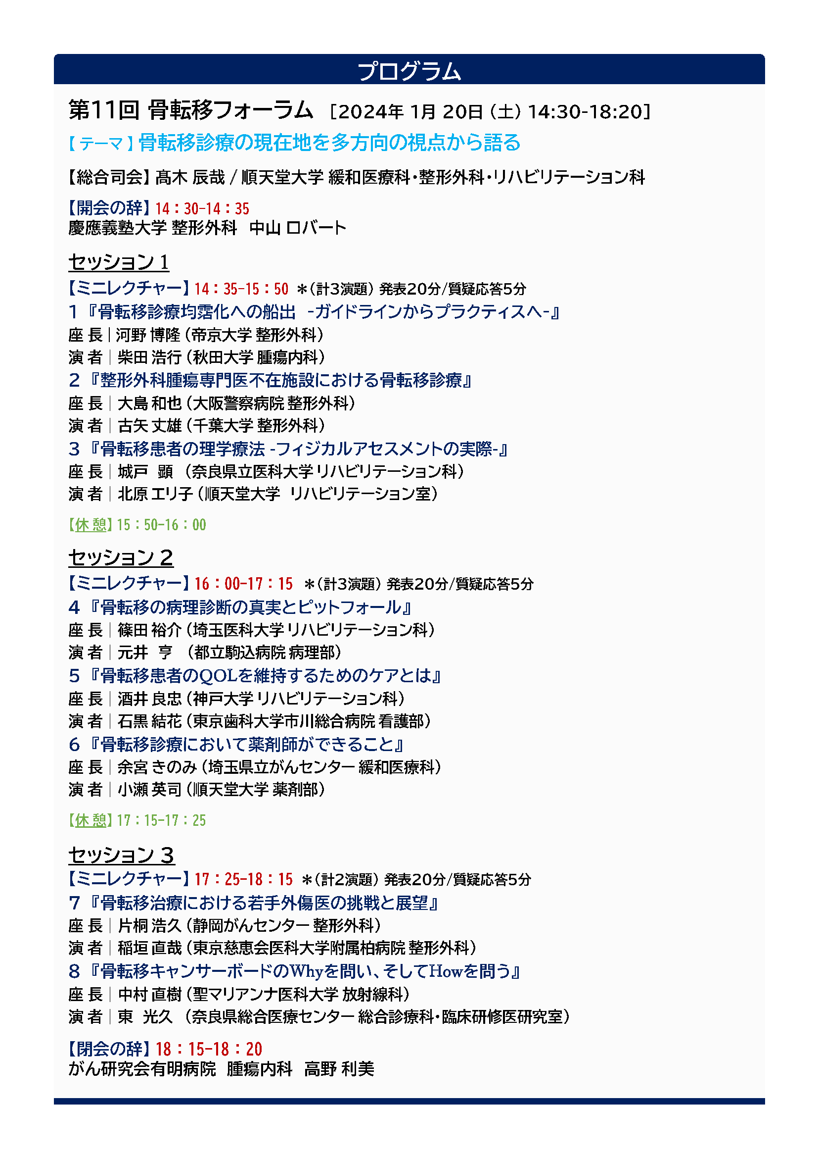 【慶應義塾大学】 第11回骨転移フォーラム in Tokyo / 第3回日本骨転移研究会学術集会
