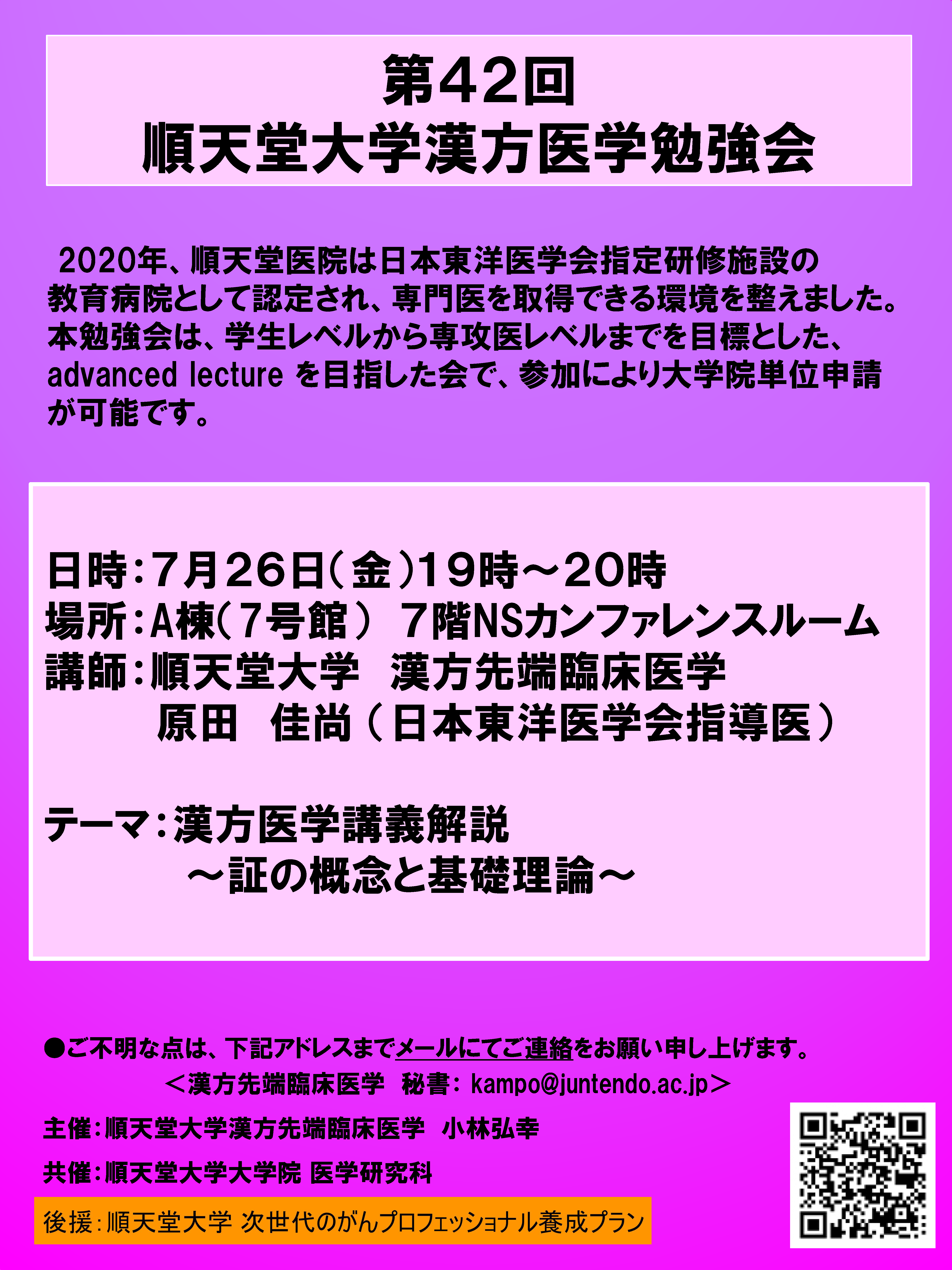 【順天堂大学】 第42回 順天堂大学 漢方医学勉強会