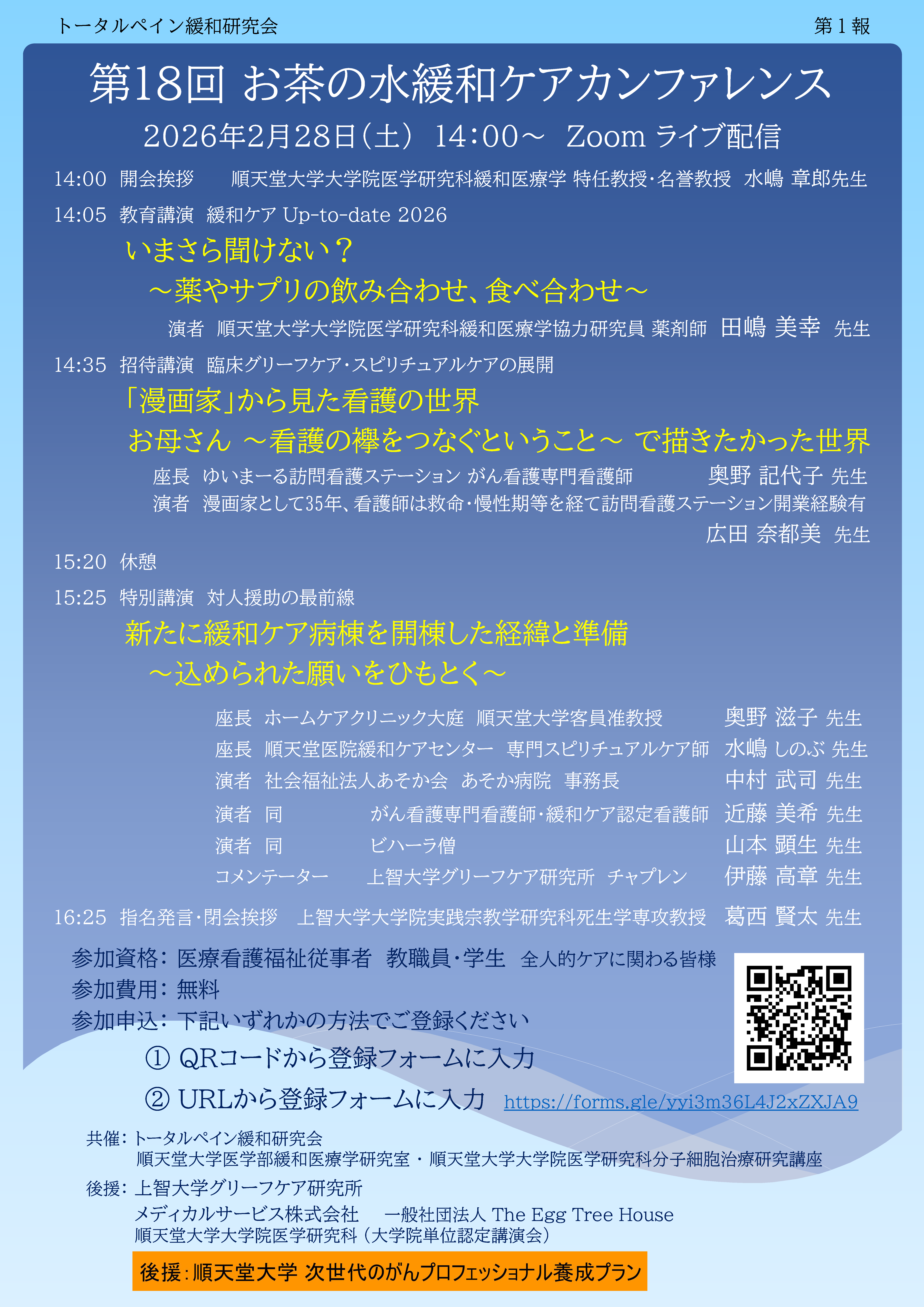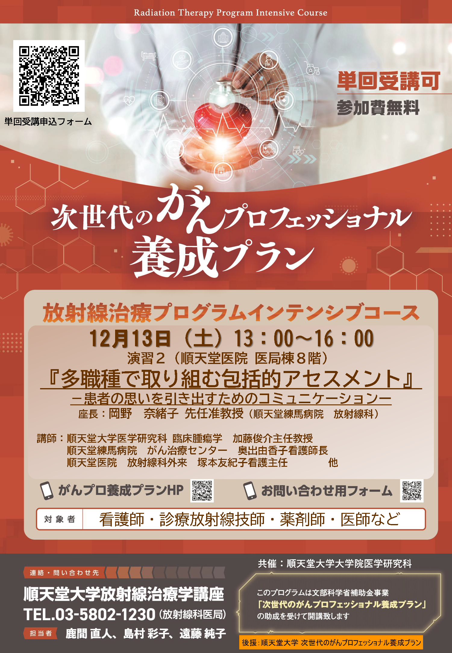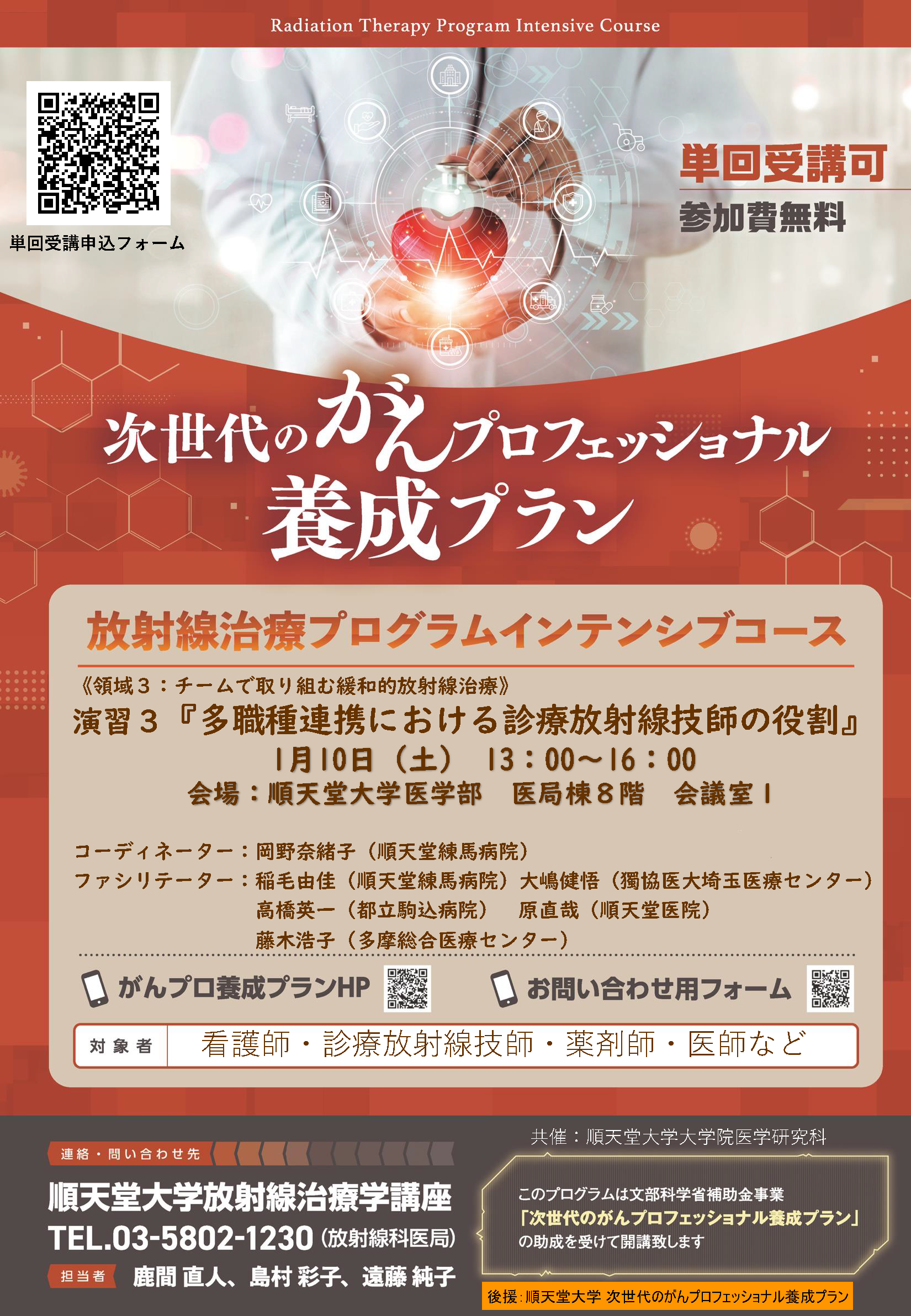 | 緩和的放射線治療・密封小線源治療・高精度放射線治療の質の向上と普及を担う人材養成コース③「チームで取り組む緩和的放射線治療」 | 順天堂大学 | ||