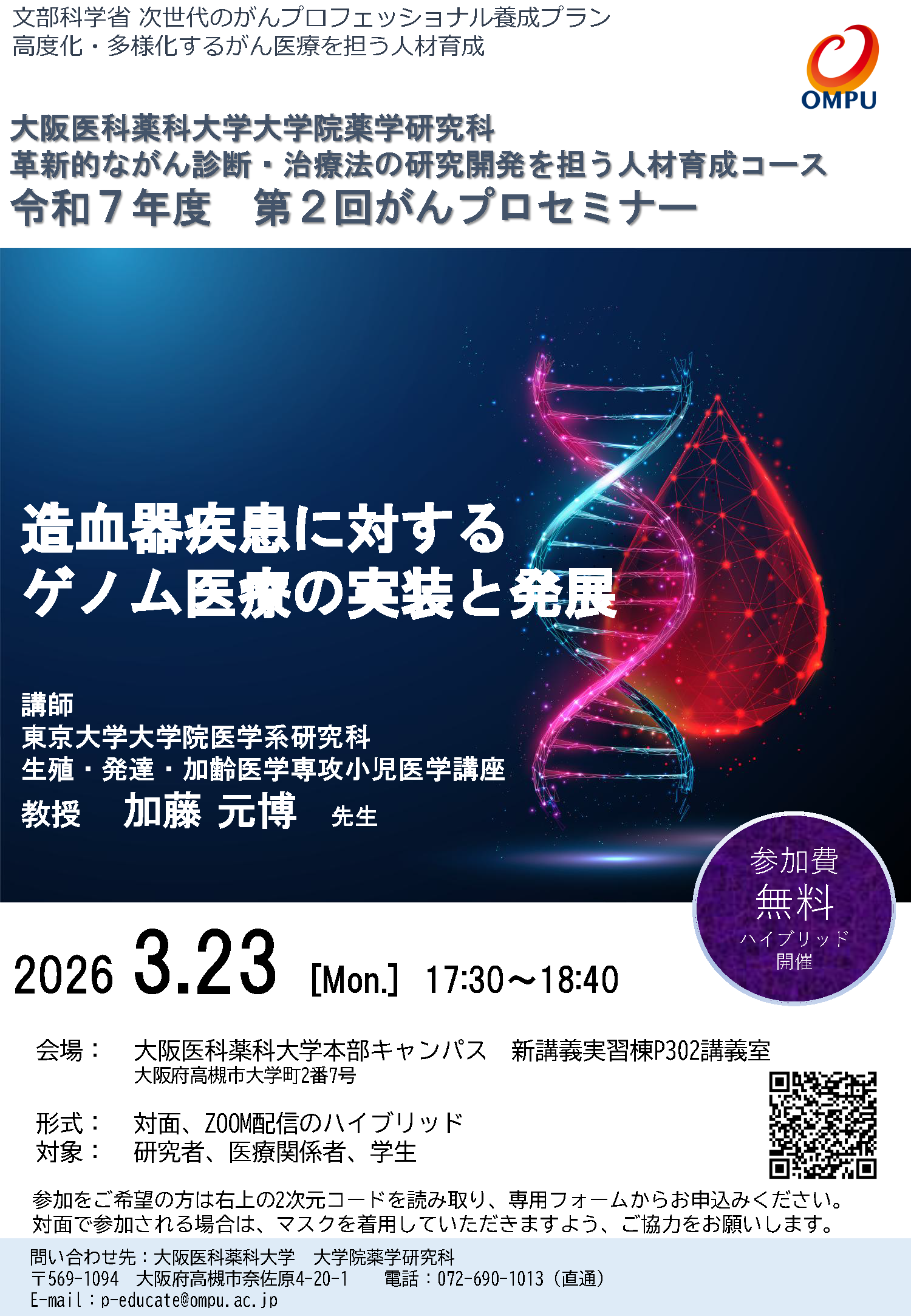<大阪医科薬科大学>3月23日(月)17:30~18:40