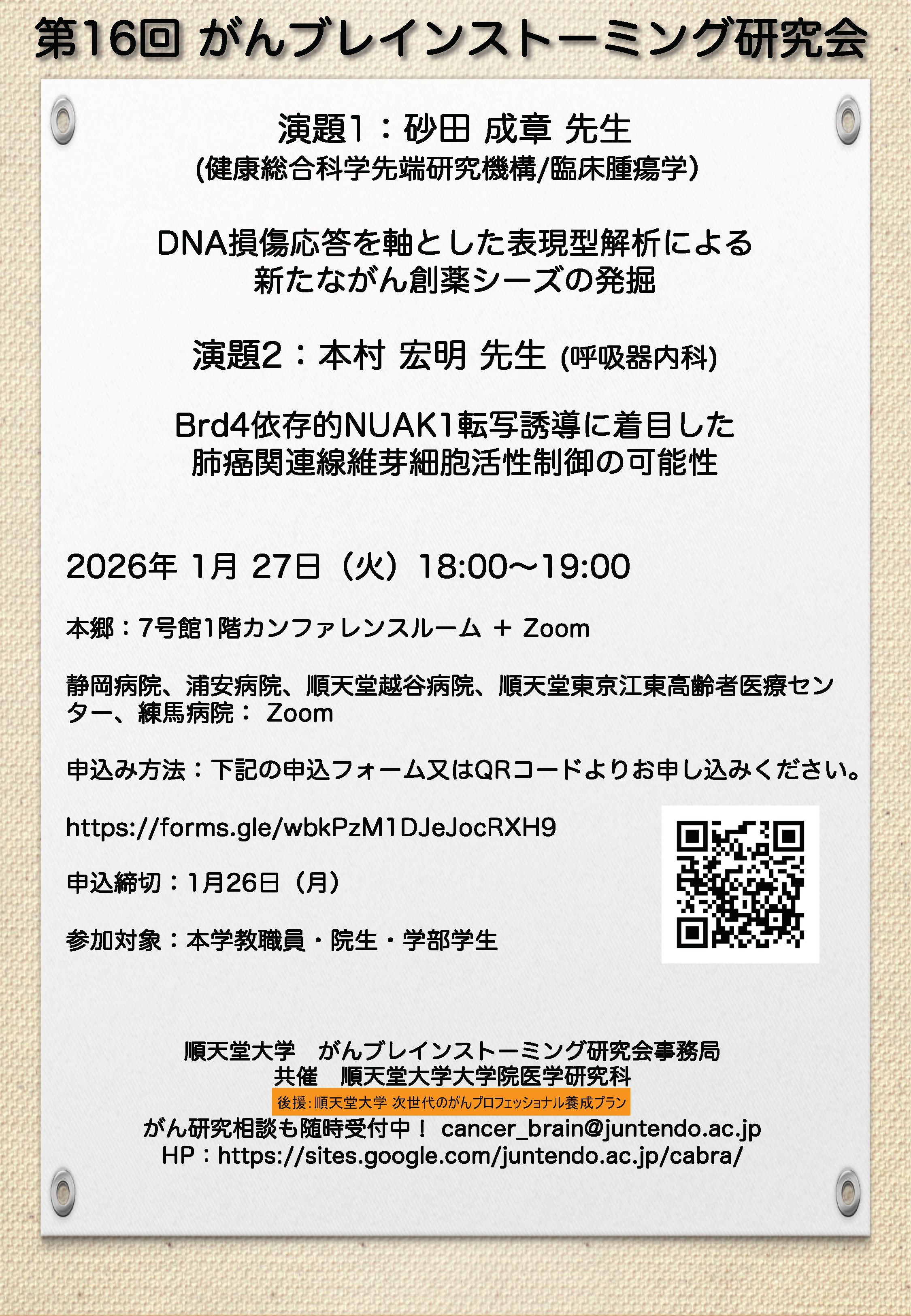 順天堂大学 大学院医学研究科 臨床腫瘍学
