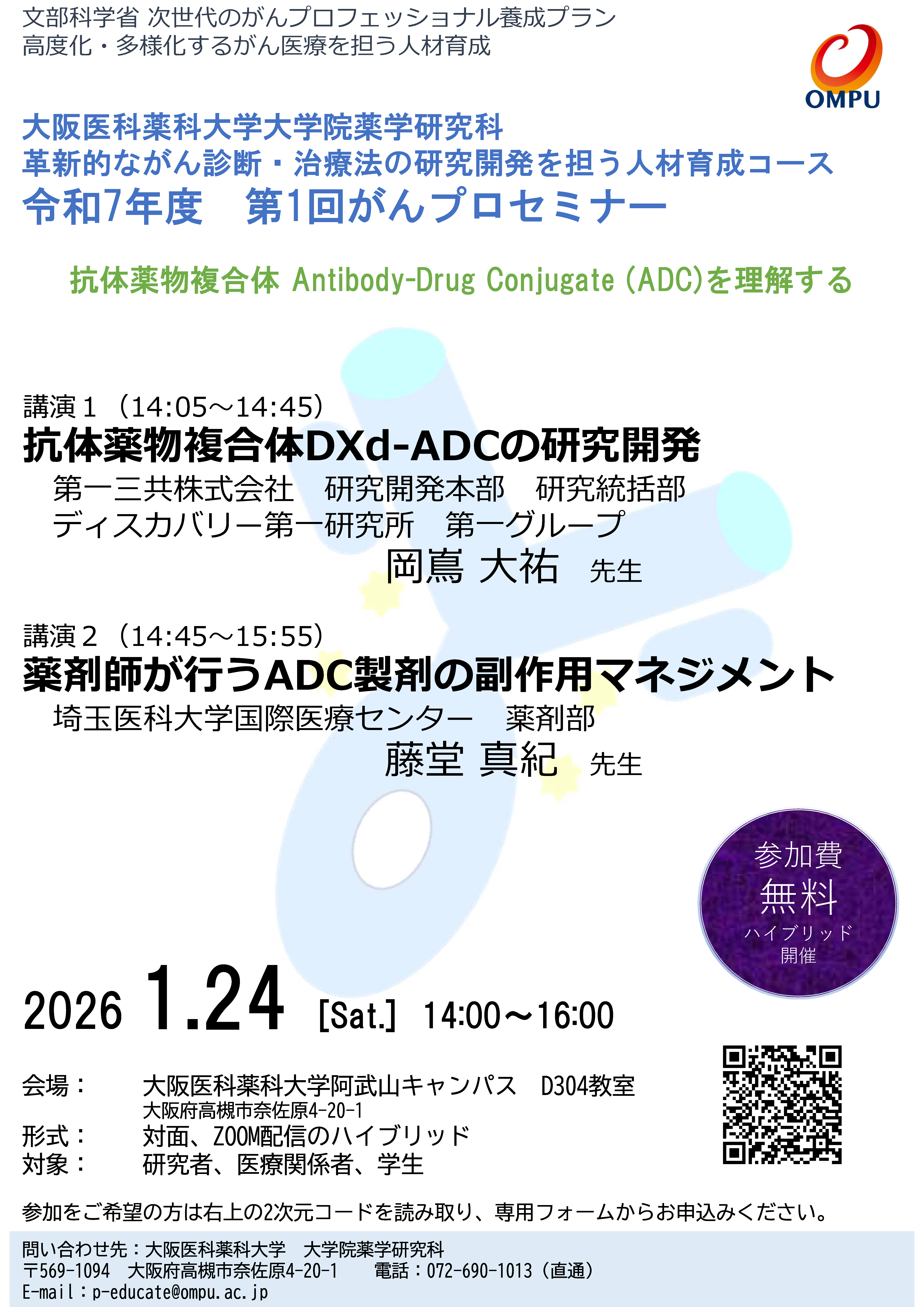<大阪医科薬科大学>1月24日(土)14:00~16:00
