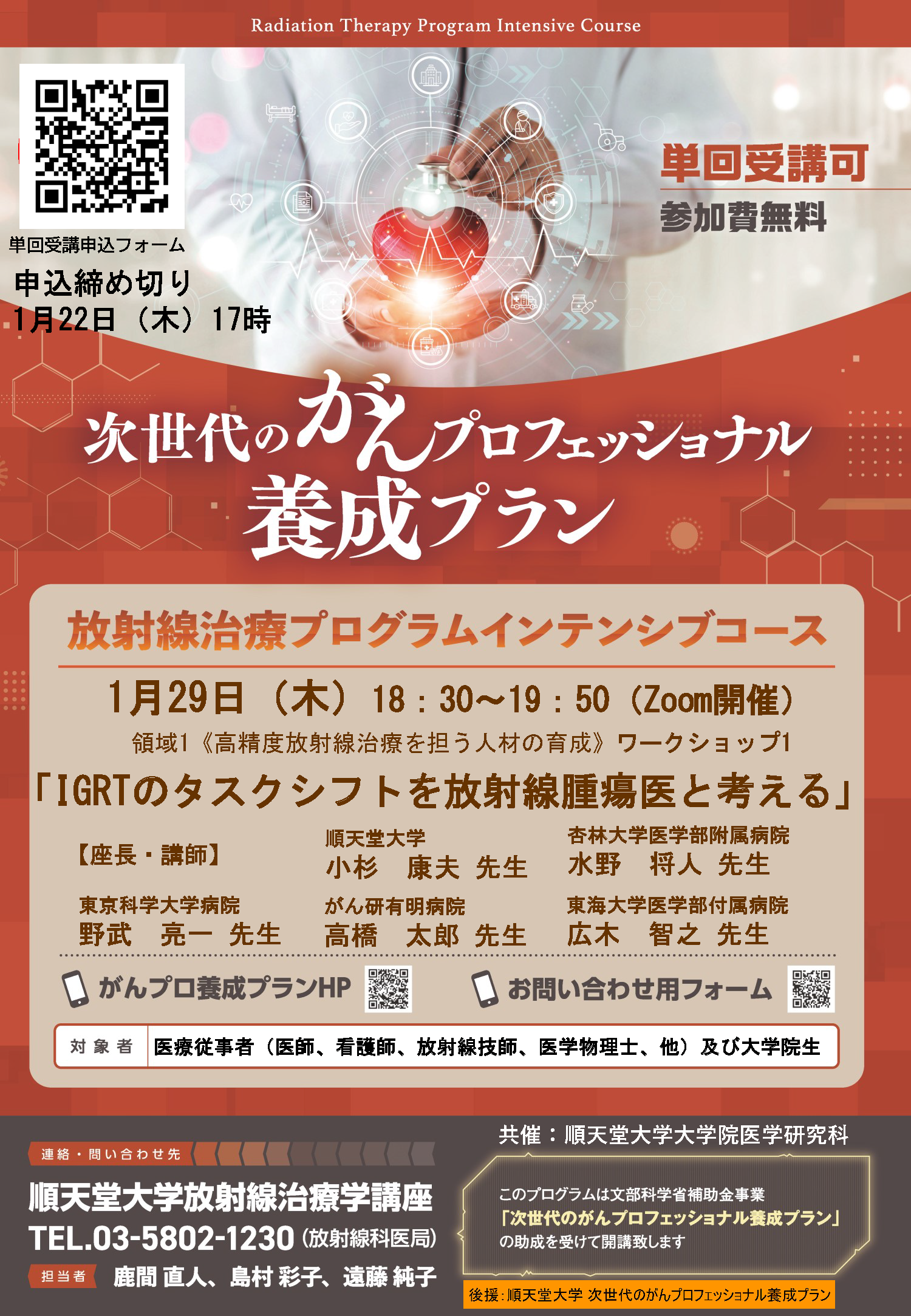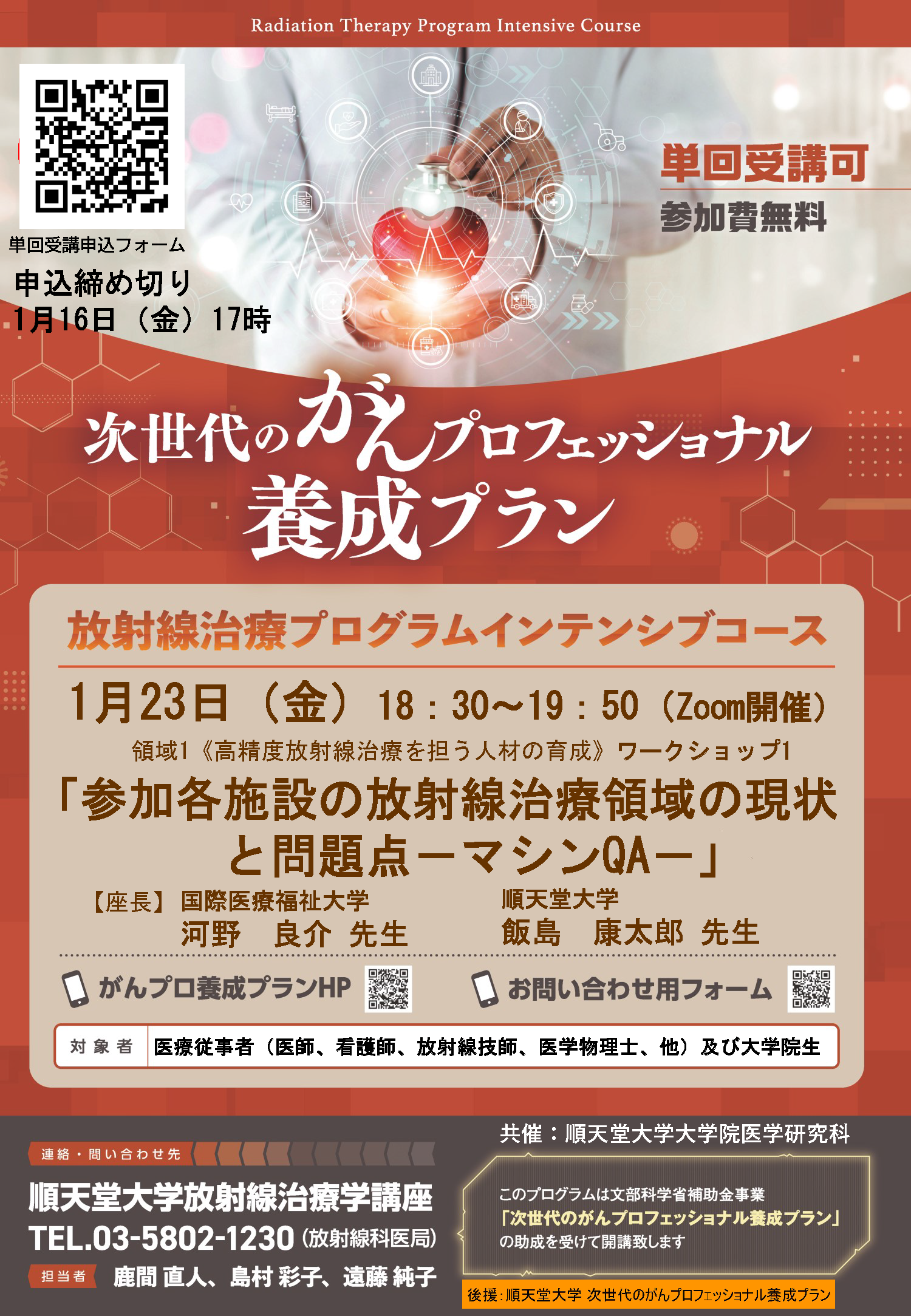 ※ 「緩和的放射線治療・密封小線源治療・高精度 放射線治療の質の向上と普及を担う人材養成コース」の受講生募集は6/30で締切りました