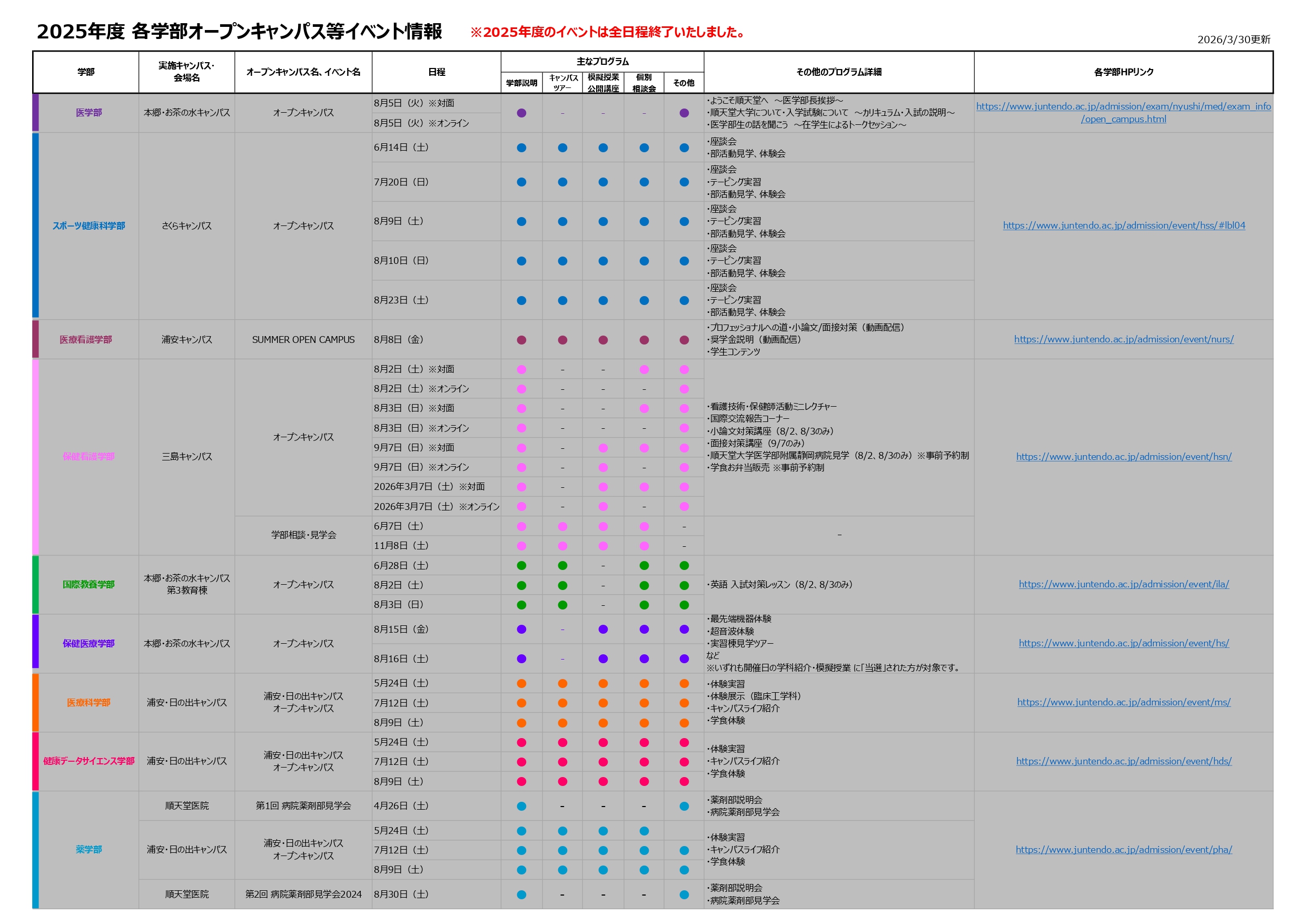 - 「順天堂大学として」参加予定の学外進学相談会一覧です。