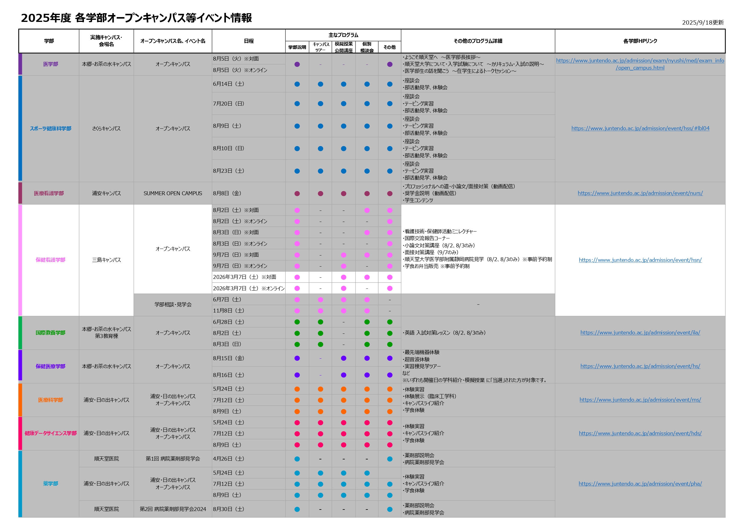 - 「順天堂大学として」参加予定の学外進学相談会一覧です。