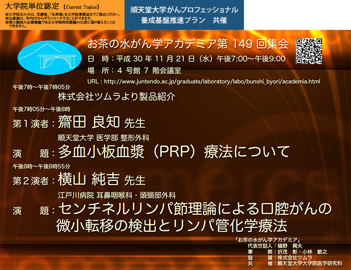 お茶の水がん学アカデミア第149回集会 2018年11月21日(水)19時〜21時 場所:4号館 7階会議室