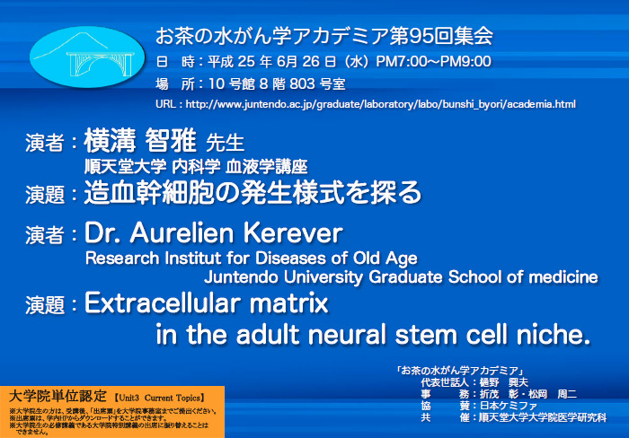 お茶の水がん学アカデミア第95回集会 平成25年6月26日(水)19時〜21時 場所:10号館8階803号室