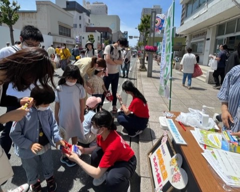 5月5日に三島市のGW恒例イベント「春の大通り商店街まつり」が開催され、今年も保健看護学部の学生がボランティアとして参加しました。