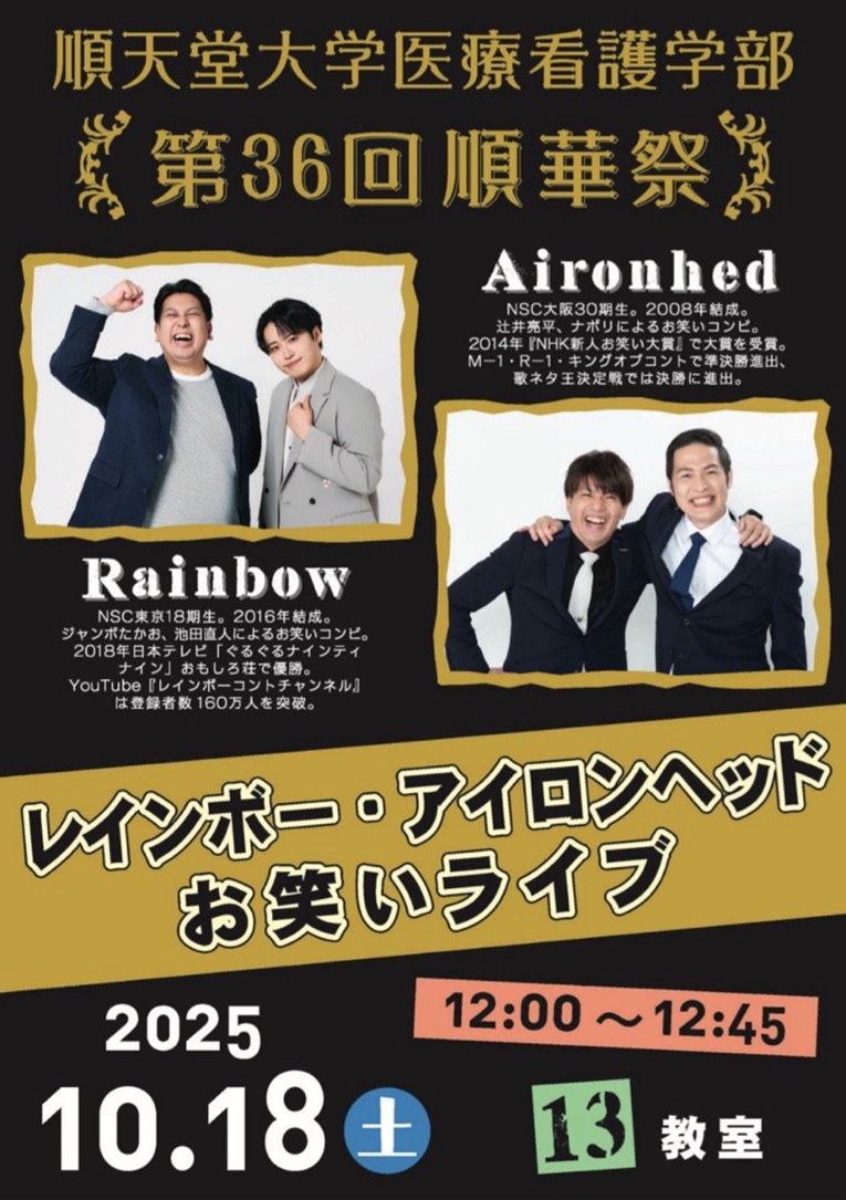 お笑いライブ | 13教室 | 開場:11:50 開演:12:00 閉演:12:45 |