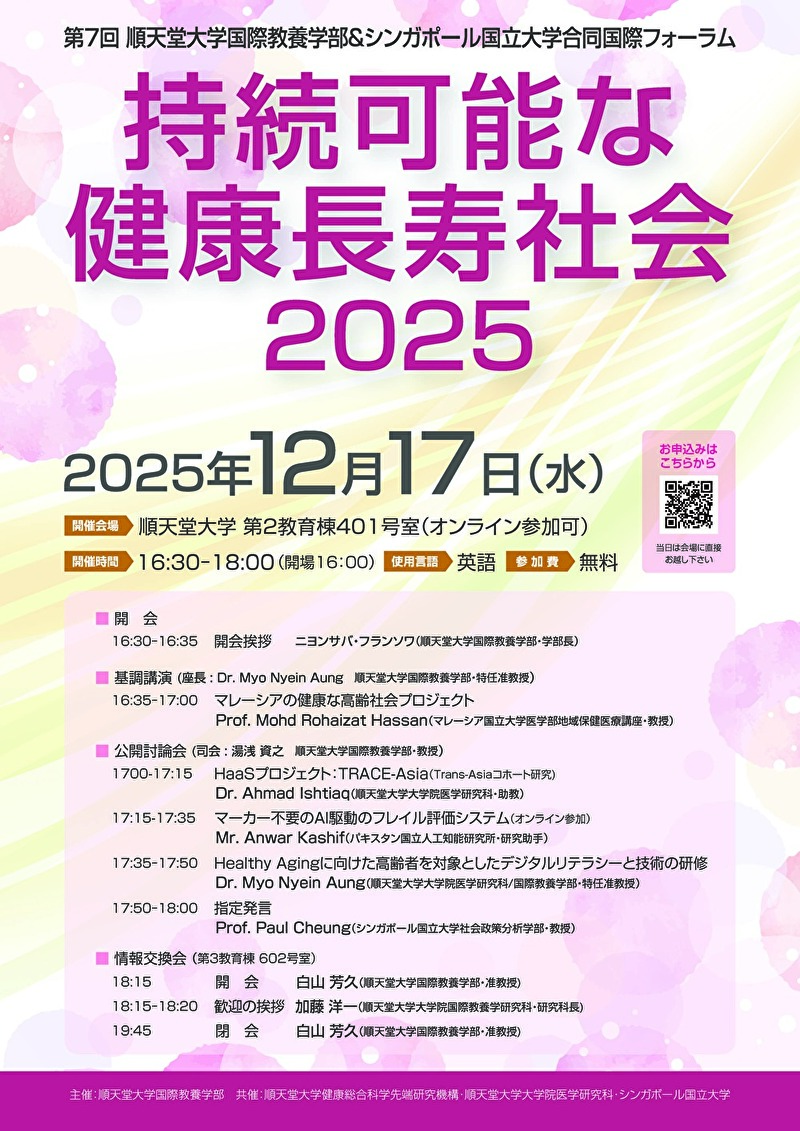 【国際教養学部】第7回順天堂大学&シンガポール国立大学合同国際フォーラム