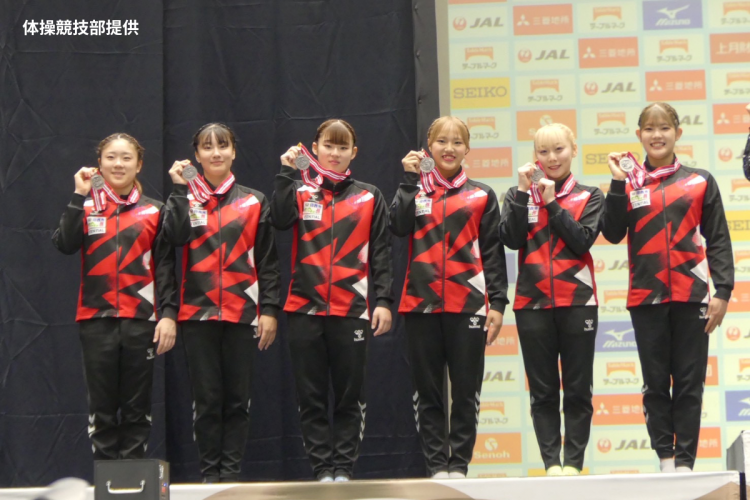 体操全日本団体・種目別選手権 。女子団体が銀! 種目別で3年宮田と1年角皆 が金!