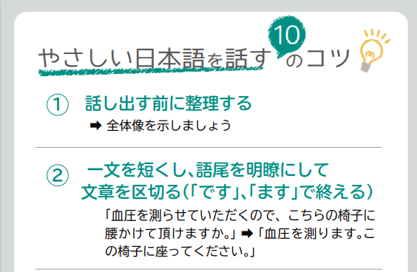 診療場面で使うフレーズを「やさしい日本語」に。外国人診療に役立つ「やさしい日本語」医療者向けリーフレットが完成